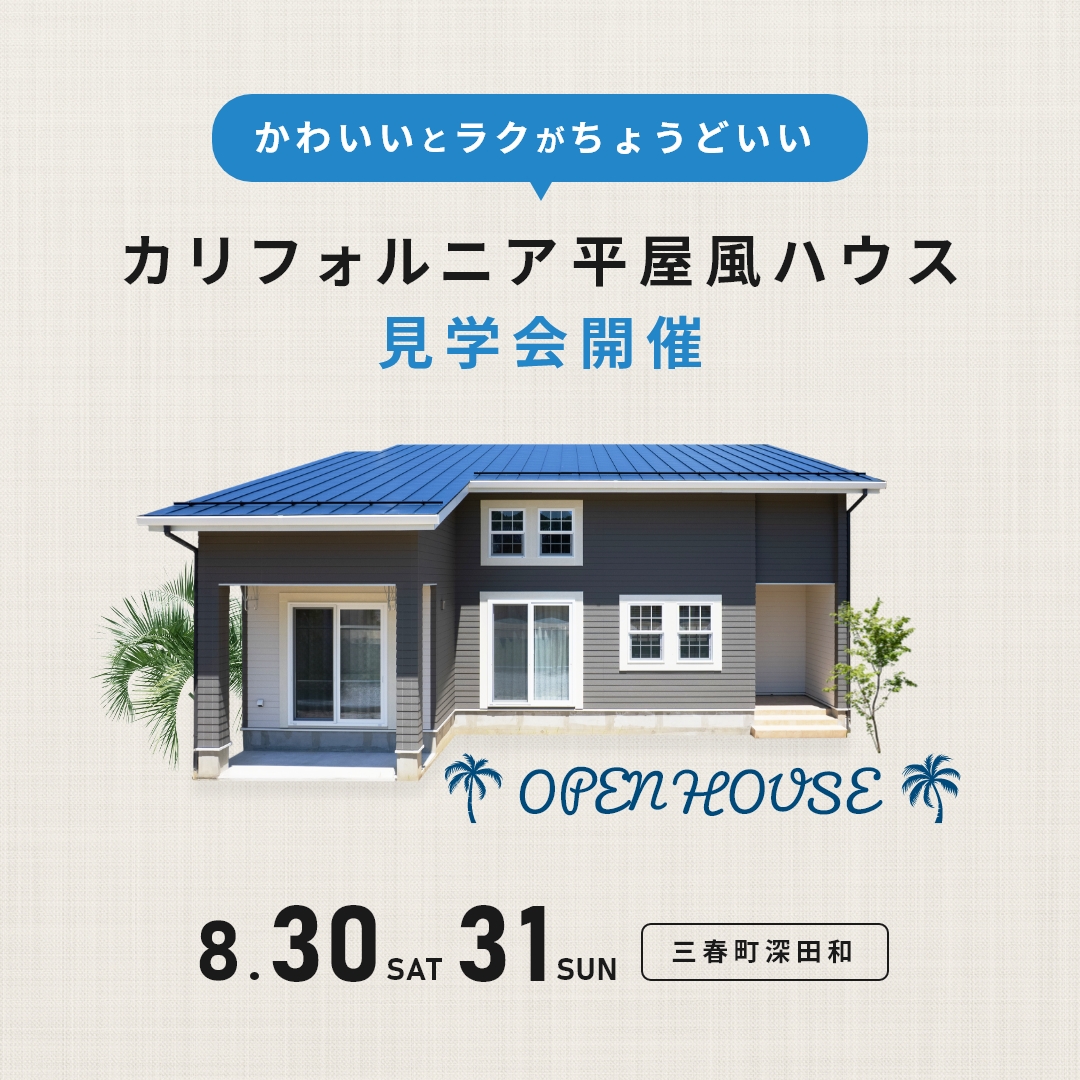 8 30〜31三春町深田和 平屋風二階建て、カリフォルニアスタイルの家見学会 - ウェルズホーム福島県郡山・会津・白河の注文住宅 建売なら。