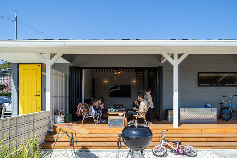 アウトドアリビングを楽しむカリフォルニアスタイルの平屋岐阜の注文住宅・新築一戸建てなら森住建。