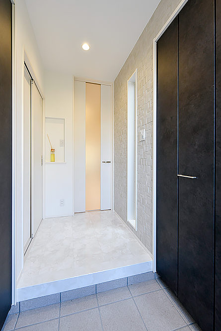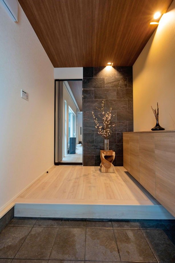 MIRAISMの家玄関 玄関ホール 玄関インテリア 玄関タイル 間接照明ホテルライク ホテルライク な暮らし マイホーム デザイン住宅 注文住宅 広島工務店 miraism。