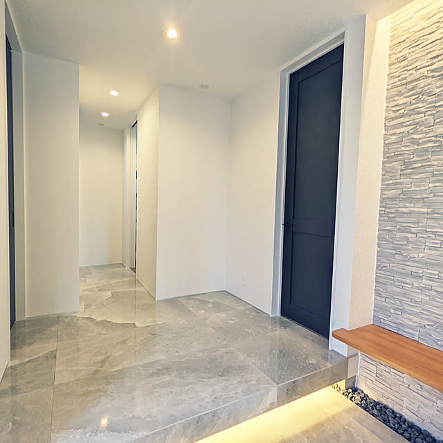 ホテルライク な物件ご紹介 まずはその1 玄関ホール玄関ニッチガラス棚板エコカラットライトアップ石目調フローリング とかっこよエッセンスを畳みかけ! モノトーン でキリッとコーディネート非日常を日常に*^▽^* REN-STYLEに お手伝いさせてください。