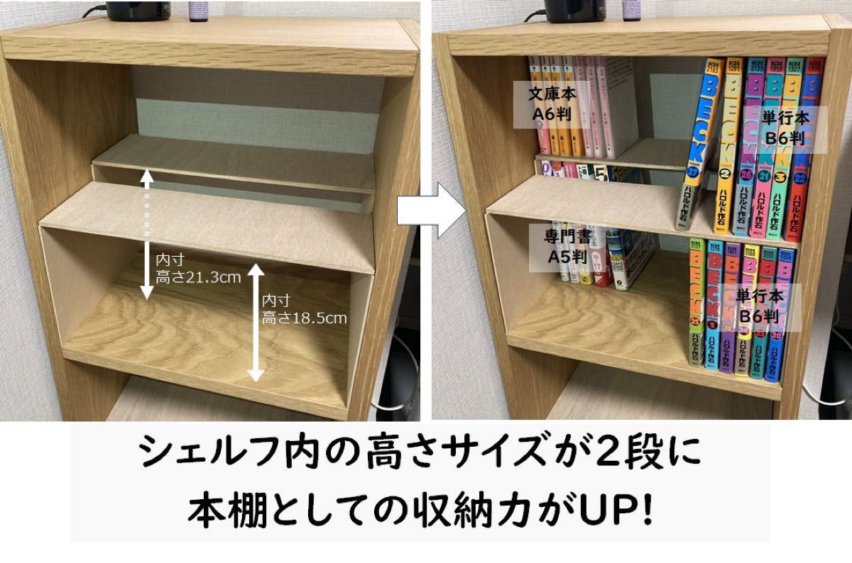 スタッキングシェルフ コの字棚 本棚・本収納。