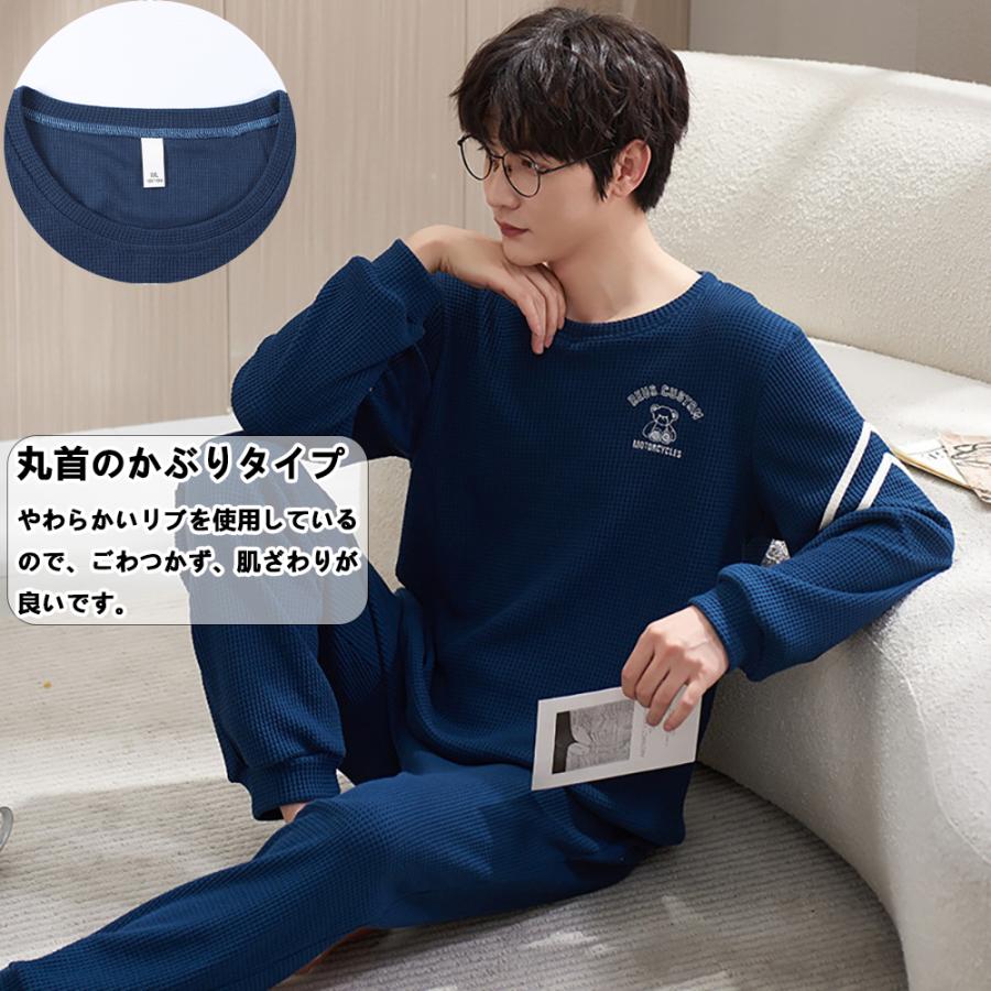 パジャマ メンズ 春秋冬 綿 長袖 シンプル カジュアル ゆったり 部屋着 セットアップ モダン ルーム ウェア かっこいい。