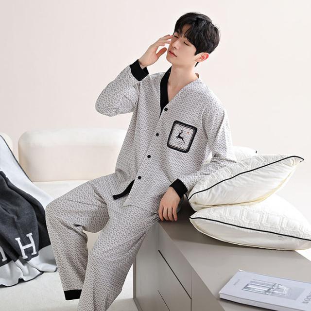 楽天市場 パジャマ ルームウェア パジャマ メンズ 上下セット 長袖 秋 冬 前開き ナイトウェア 部屋着 おしゃれ ギフト セットアップ かわいい寝間着 寝巻き プレゼント 春秋 お祝い 送料無料 : AddChic。