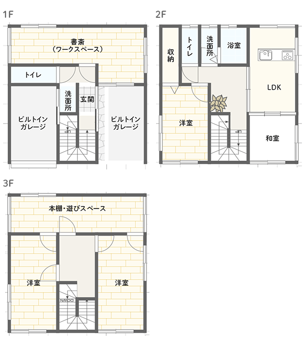 仙台市で生活動線に配慮したキューブ型3LDKの間取り_001:約31坪 - 仙台市で耐震設計の注文住宅、規格住宅、平屋ならアルボスの家。