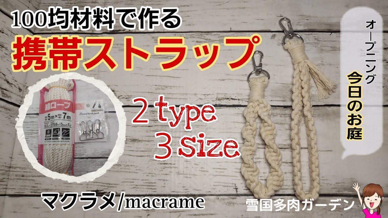 超簡単! Seriaのマクラメ用コットンロープでスマホストラップ。