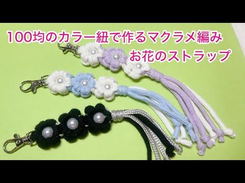 簡単マクラメ 初めてでも簡単100均の材料で作るお花マクラメキーホルダー ゆっくり解説動画Vol,83 How to make macrameknots keyring。