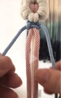 100均のカラー紐でマクラメ編みのお花のストラップ。