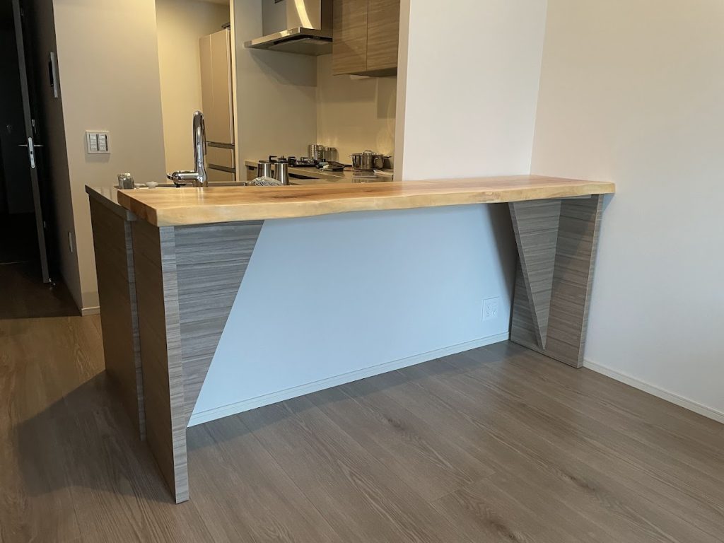 対面キッチンカウンターテーブル天板のオーダーメイド。