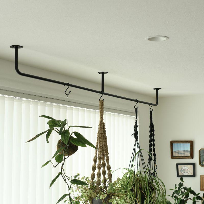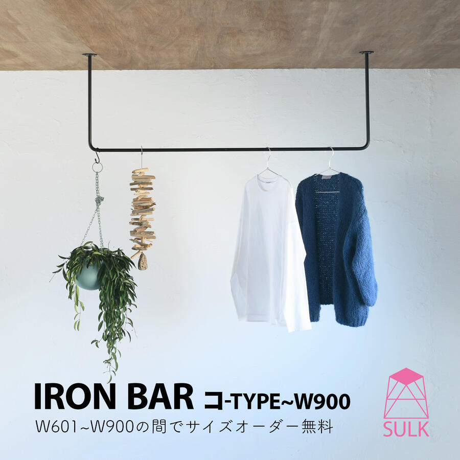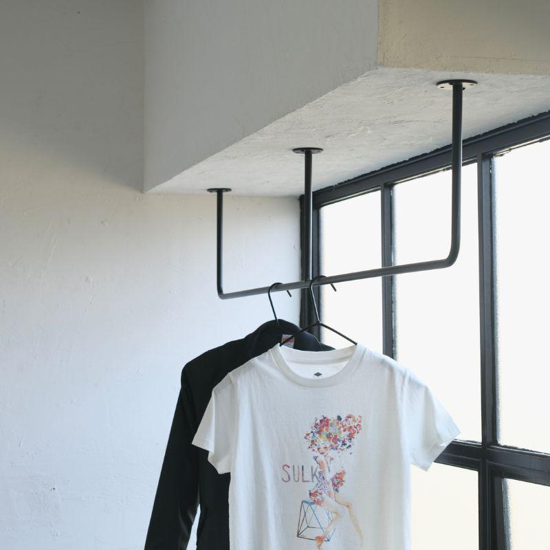 SULK アイアンバー ハンガーバー ハンガーラック 室内物干し 天井 アイアン 鉄 マットブラック 黒 艶。