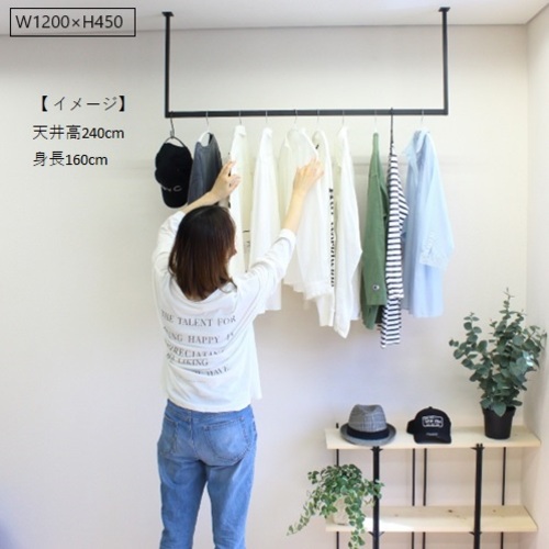 AmazonSULK アイアンバー ハンガーバー ハンガーラック 室内物干し 天井 アイアン 鉄 マットブラック 黒 艶消し W1200 H500丸棒 日本製 職人の手作りハンガーラック オンライン通販。