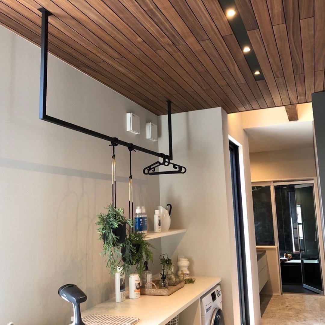 ランドリーバー 室内物干し 洋服掛け おしゃれ 天井 アイアンバー 新築。