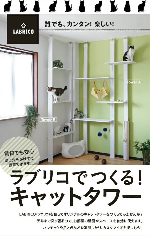 キャットタワー キャットウォーク 通常版スタンダードモデル 壁に穴をあけないので賃貸でも可能。
