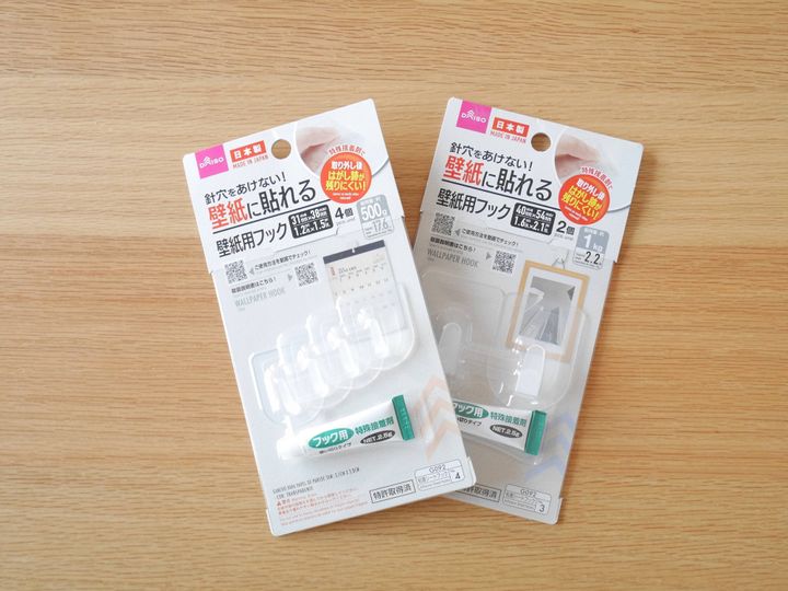 ダイソーの「針穴をあけない壁紙に貼れるフック」を百均フック各種と比較New!収納教える.コム。
