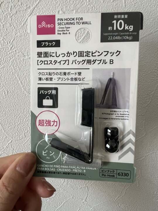 ダイソー 賃貸OK!壁に大きな穴を開けずに重い鞄を壁掛けにできる!ぺろくまブログ。