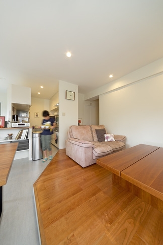 低くて水平なデザインのリビング 千葉県船橋市『私たちの家』- リビングダイニング事例SUVACO スバコ。