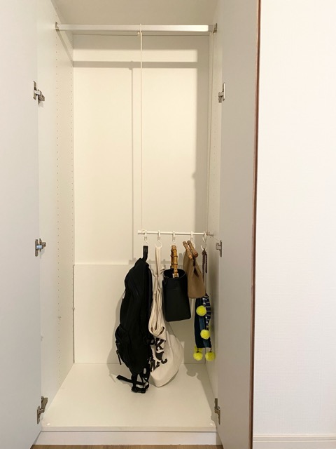 100均ブランコハンガーDIY クローゼットのバッグは吊り下げ収納ミニマリストあやじまのブログ。