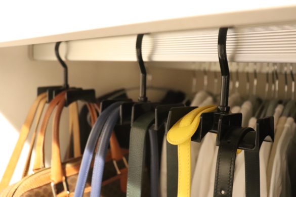 バッグ収納に100均バッグハンガーが便利!クローゼットに吊り下げもできます。