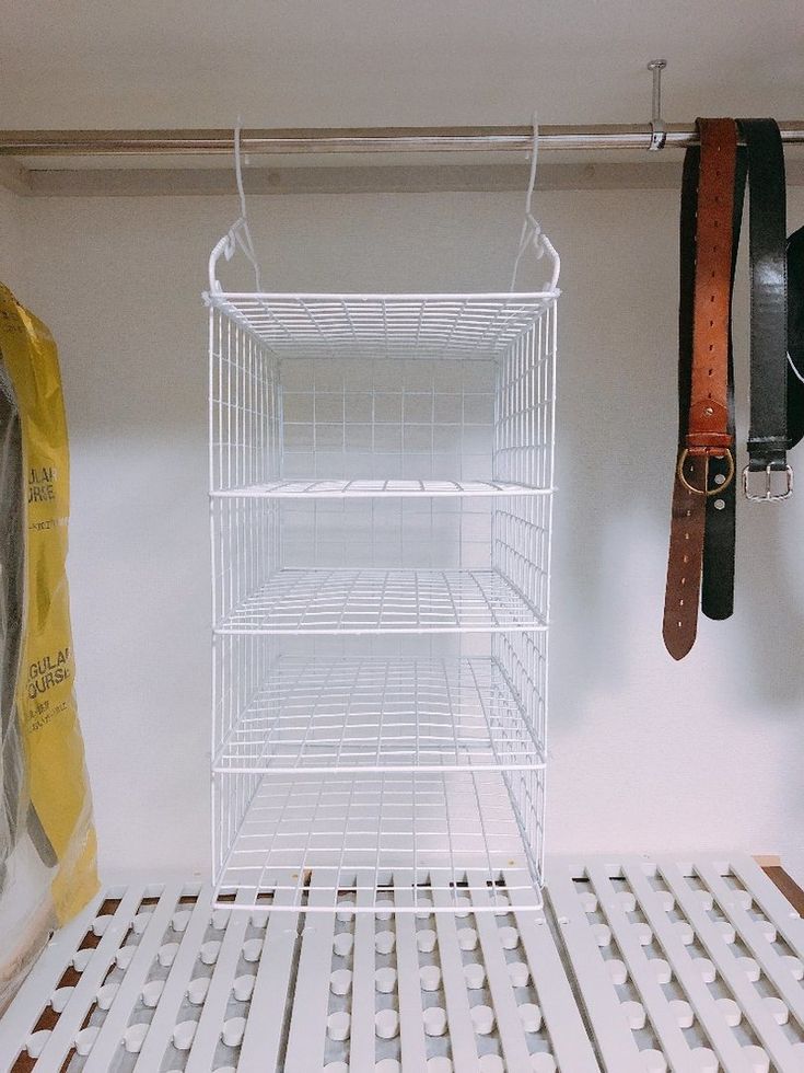 ワイヤーネットでクローゼットに吊り下げ棚を手作り!洋服・バッグのちょい置きにも家がどんどん好きになる。