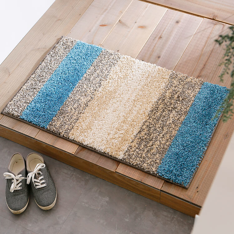 洗える 北欧ルーフ 玄関マット フロアマット 50 x 70cm ブルー calmland カームランド。