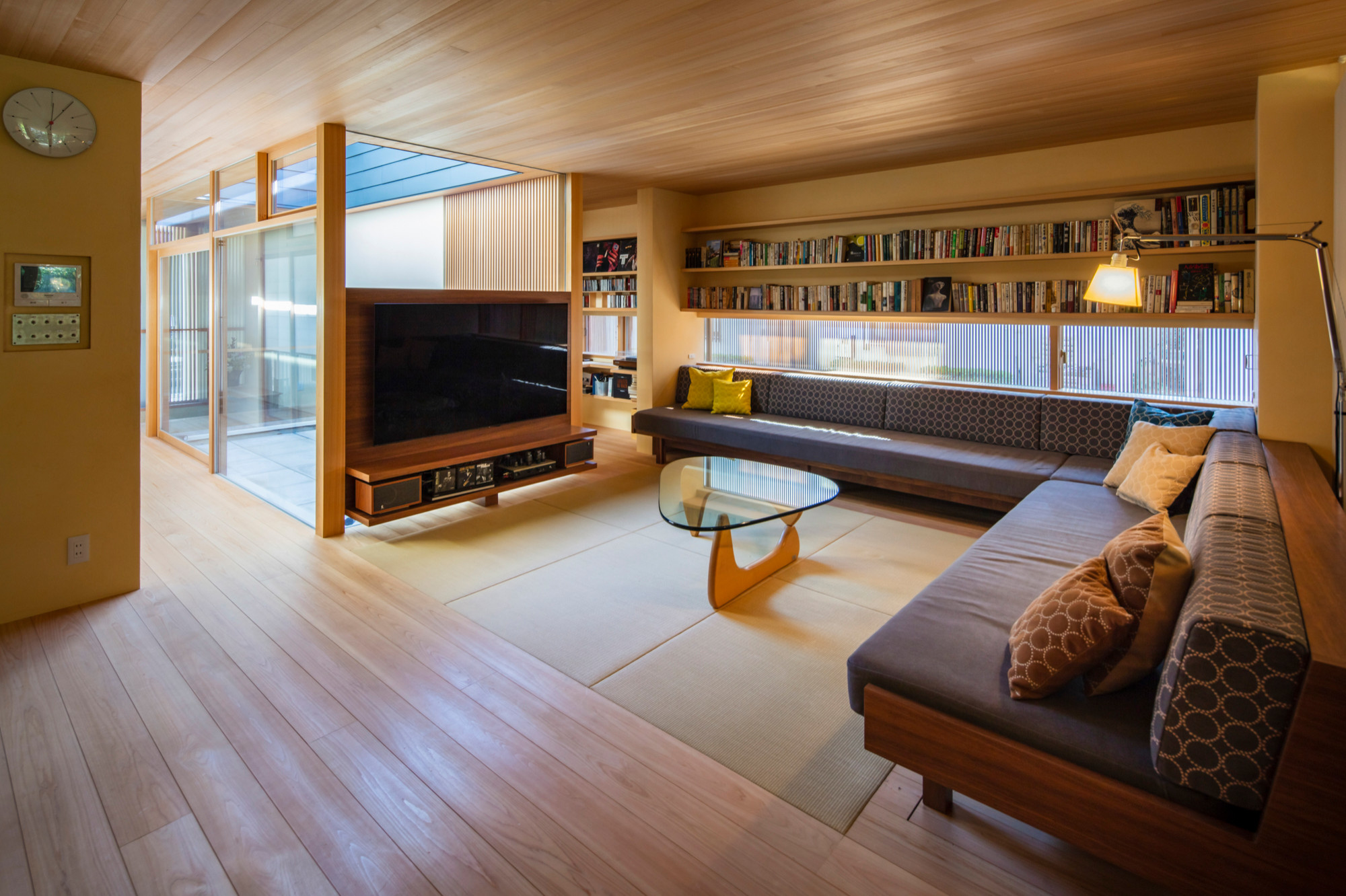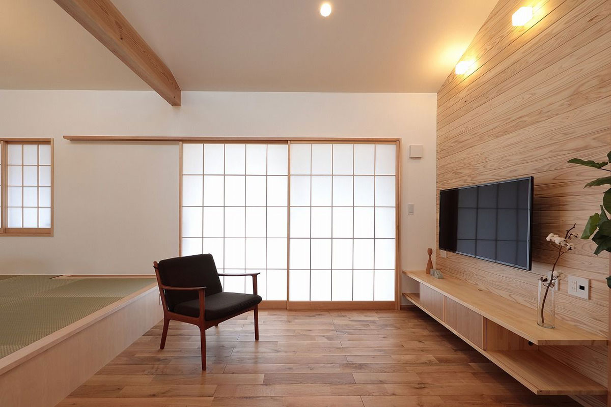 かっこいい和モダンの新築リビングづくり建築家工事のデザイン実例注文住宅ブルーハウスデザイン・性能・リゾートライフ、愛知、名古屋、豊橋、豊川、岐阜ならお任せください。
