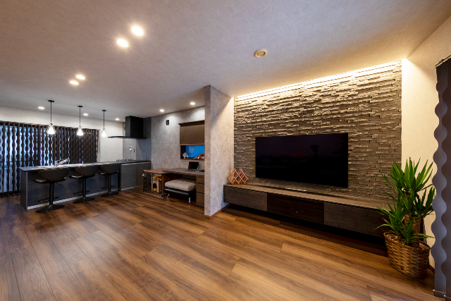 大人かっこいいリビングダイニング戸建ての施工事例佐倉・印西・八千代の分譲住宅・注文住宅・リフォームは大東建設。