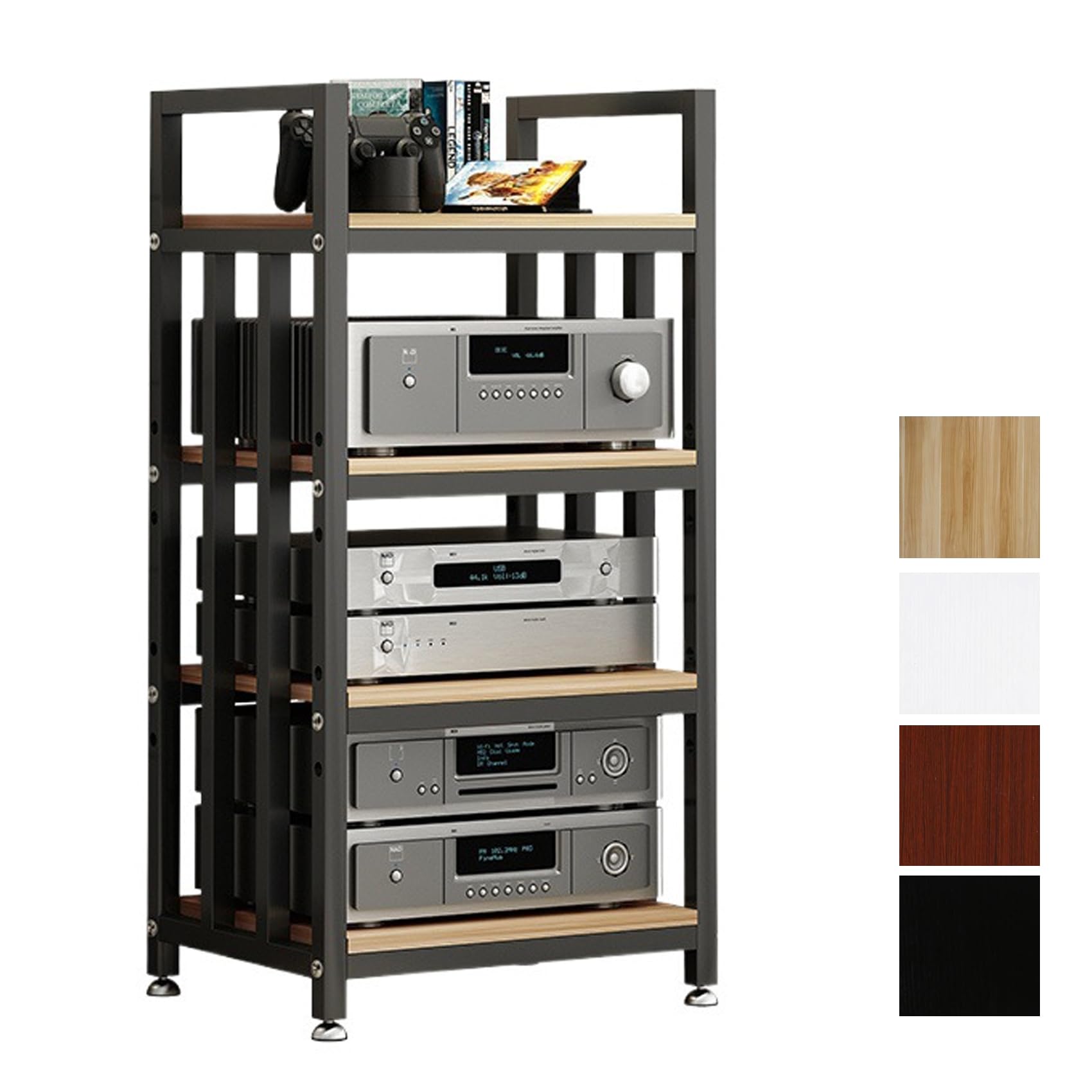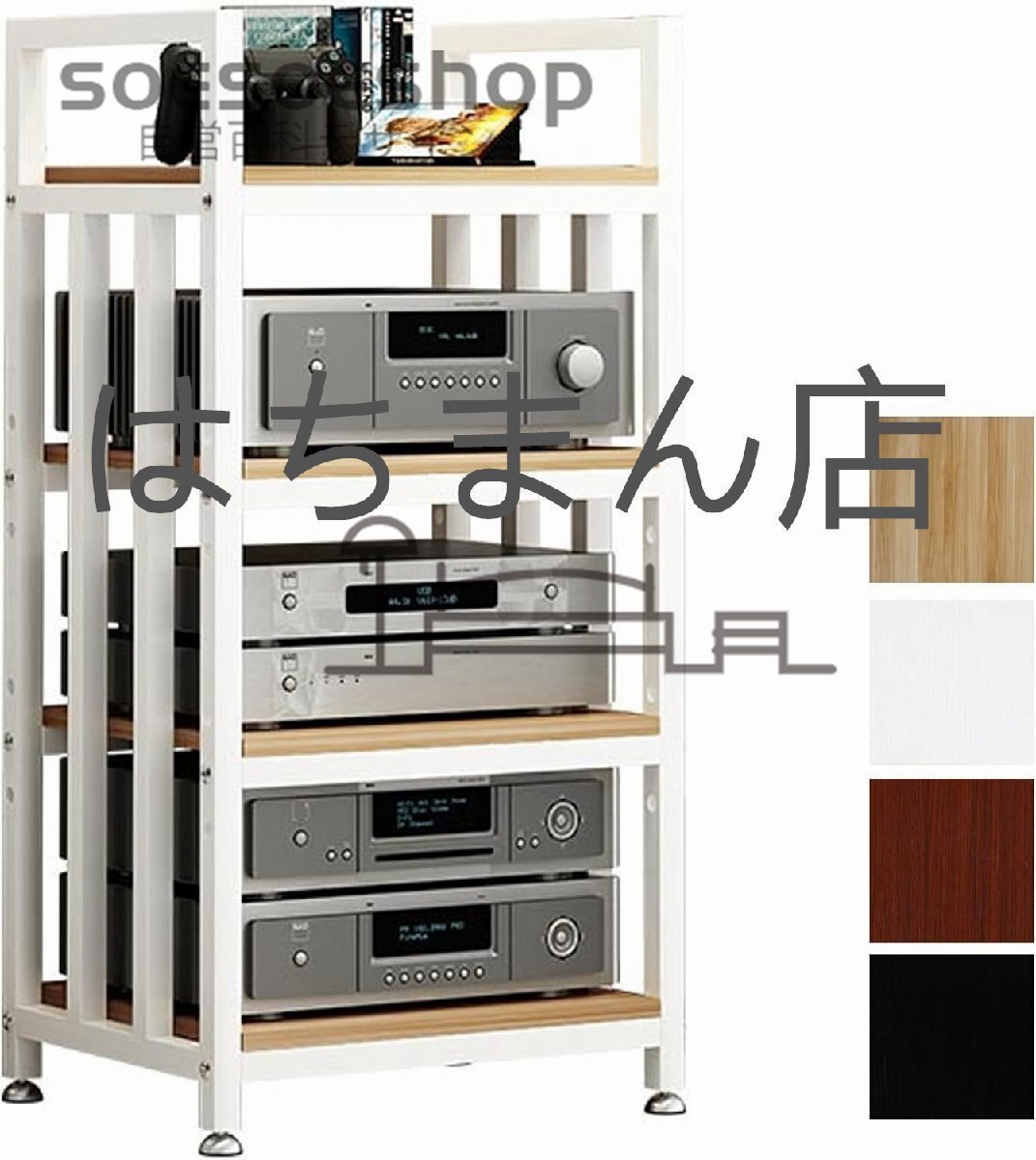 オーディオラック 木製 4段 幅50 45奥行45 43高さ85 頑丈! Amazon。