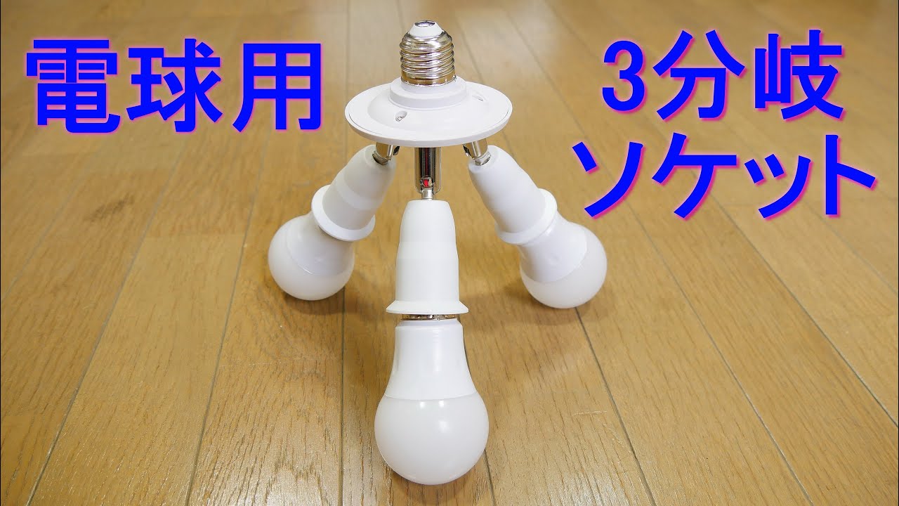 電球用3分岐ソケットをダウンライト、レセプタクルに取り付け ・ 簡単に光量不足解消 ・電球増設照明器具・LED・金口E26。