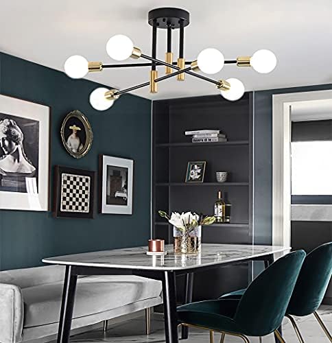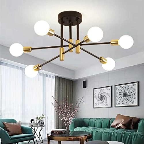 シャンデリア, 調光可能な複数ロッド錬鉄製シーリングライト 6 ライト屋内メタル分岐セミフラッシュマウントランプモダンな照明器具リビ シーリング ランプ6-ライトセミフラッシュマウントシーリングライト農家??用のモダンなシーリングライトペンダント照明。