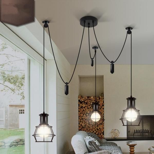 ミッドセンチュリーメタルシャンデリア③ライト、インダストリアルスタイルのシーリングライト分岐パイプ、ダイニングルームngルームに適合 スパイダーライトシャンデリア専門店ELJEWEL。