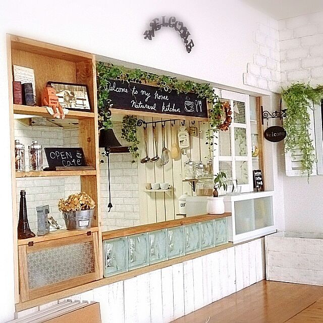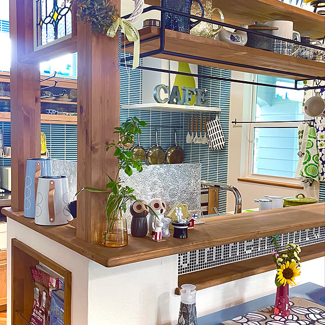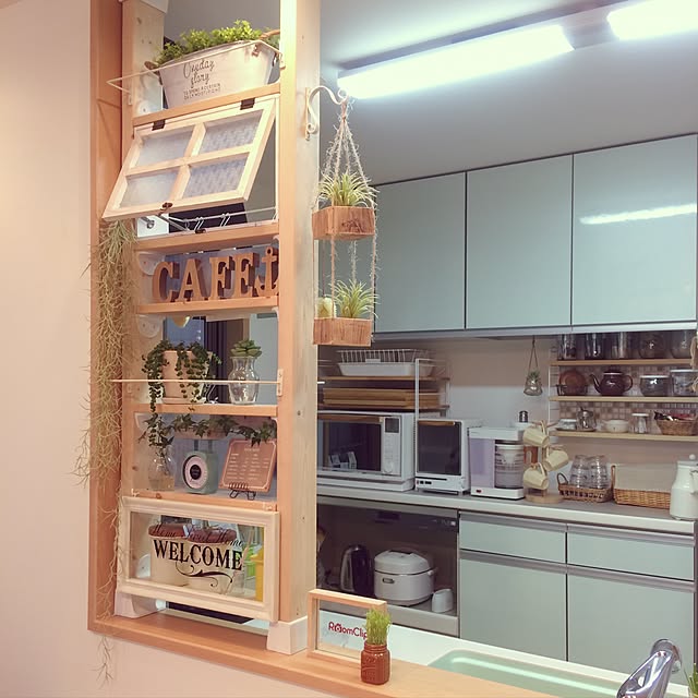 キッチン 目隠しのおしゃれなアレンジ・飾り方のインテリア実例RoomClip ルームクリップ。
