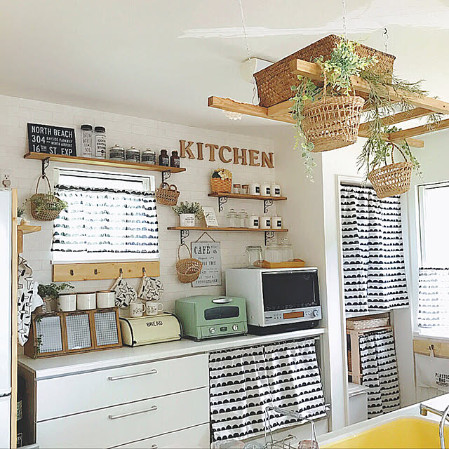 キッチン 目隠し布のおしゃれなアレンジ・飾り方のインテリア実例RoomClip ルームクリップ。