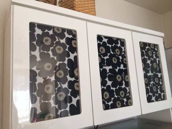 食器棚の扉に、ときめきの布を、○○で、貼りました♡こんまり流ときめき片づけで、ときめく暮らし***コクウ***。
