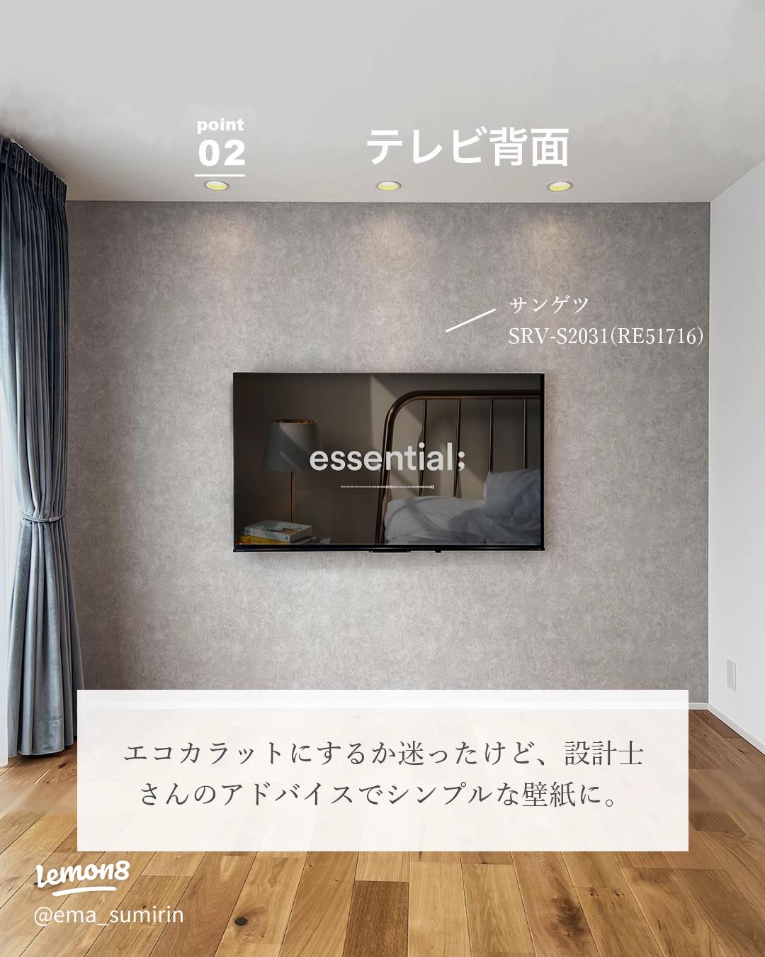 𝗌 𝗁 𝗂 𝗈 𝗋 𝗂 . 質問をよくいただく テレビ背面のクロスについて📋 標準がサンゲツ𝖲𝖯やけど アクセント𝟣面だけ𝖥𝖤使って良かったのでここはfe76658 にしました🪞🪄旧品番fe74171 サンプル見た感じだいぶ濃いめのInstagram。
