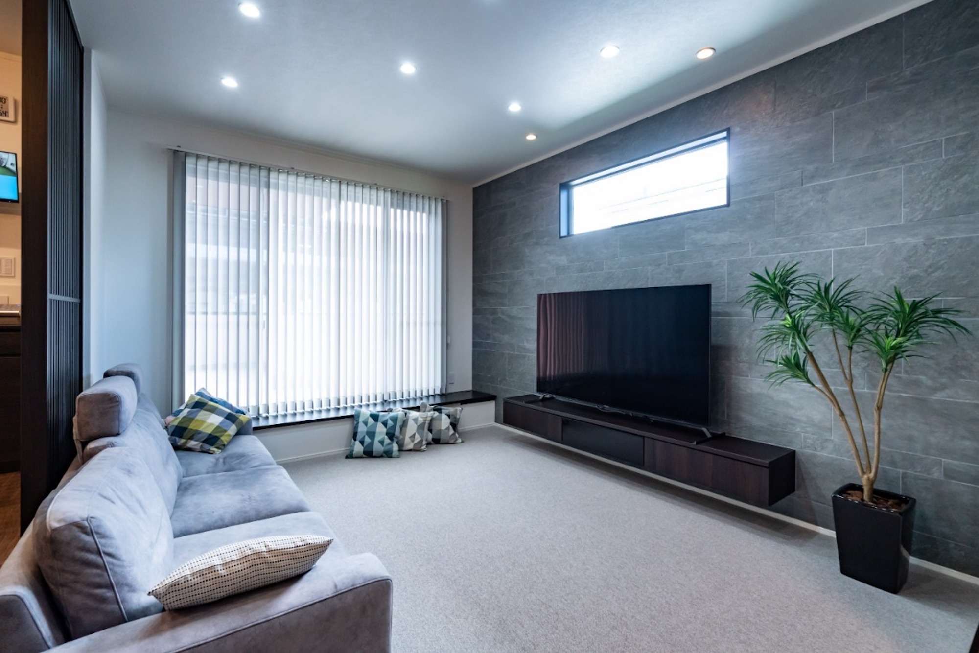 kk_ishikawa ←◼️壁掛けテレビの背面はコンクリート調のアクセントクロスを採用。 石材のような質感がリビングにアクセントを与えている。◼️年間1,000棟以上の実績◼️イシカワ良質住宅☆ 高気密・高断熱で家中どこでも「夏は涼しく」「冬は暖かい」快適空間を実現。