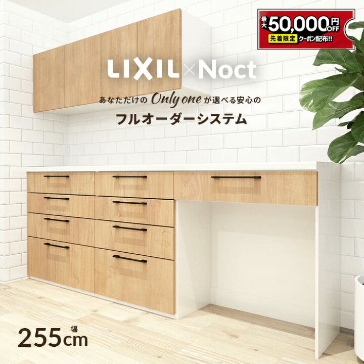 楽天市場最大5万円クーポン有カップボード リクシル ノクト 幅255cm ロータイプ カウンター DIY キッチンボード 背面収納 キッチン収納 食器棚 新築 リフォーム LIXIL 保証付 楽天キッチン売上1位 リシェル シエラ ES 納品日指定可 送料無料仕様変更プラン可能。