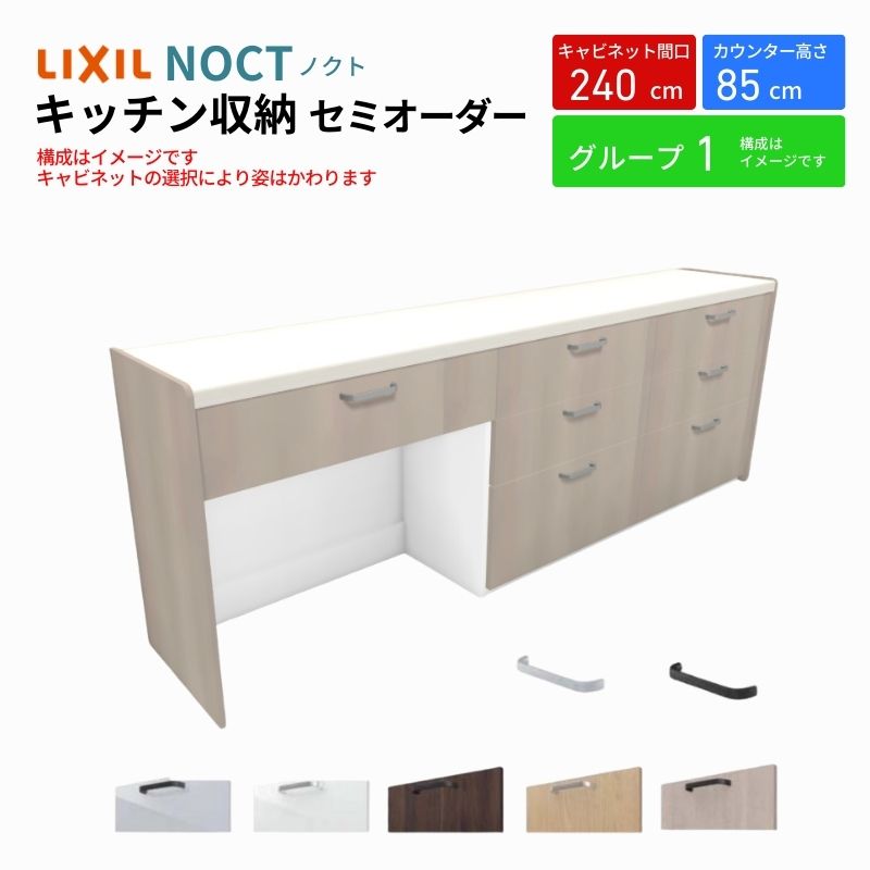 カップボード ノクト 食器棚 間口240cm 90+75+75cmフロアキャビネット カウンター高さ85cm 奥行45cm W2400mmLIXIL リクシル キッチン収納 グループ1。