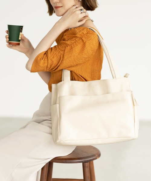 ☆ グレージュ ☆ 多収納トートバッグ トートバッグ レディース トートバック ポケット多い ポケット多め ポケットたくさん 合皮 フェイクレザーTG-100 多収納 カバン かばん 鞄 おしゃれ オシャレ きれいめ かわいい フェミニン 大人可愛い 通勤 - メルカリ。