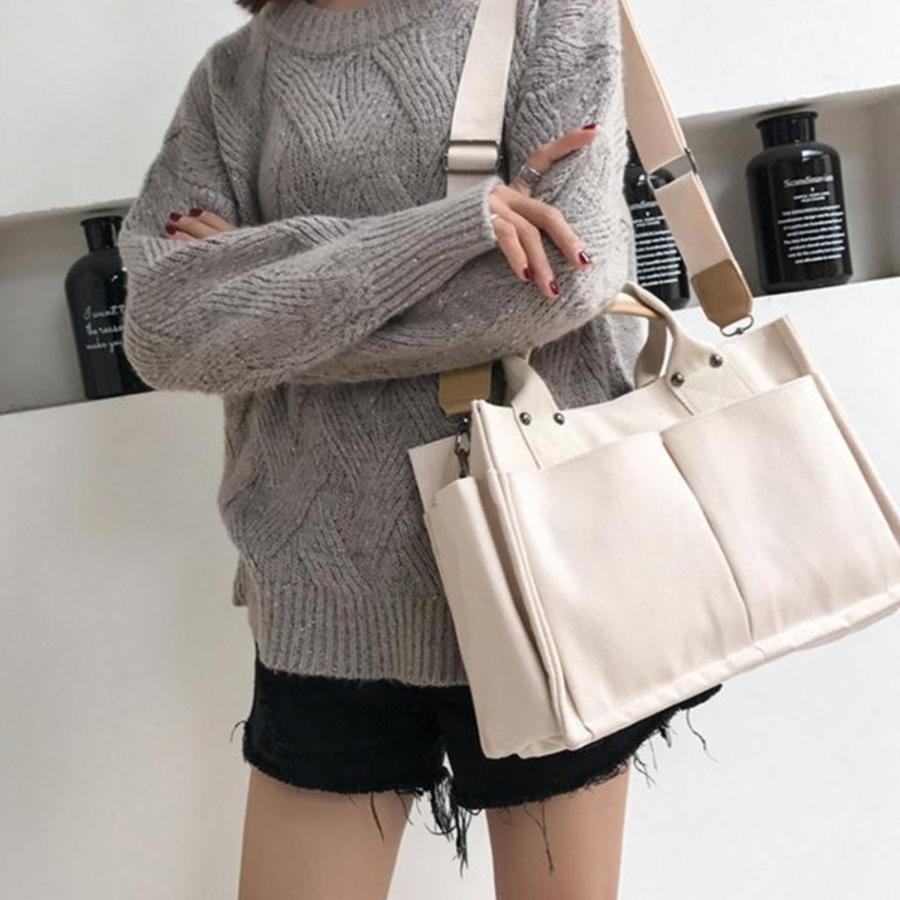 ☘️ トートバッグ キャンバス ショルダーバッグ 収納多め 2WAY 通勤 通学 - メルカリ。