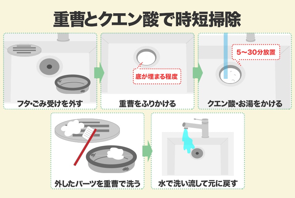 キッチンの排水溝は「重曹」と「クエン酸」で時短掃除!いつでもピカピカを保つ方法を紹介レスキューラボ。