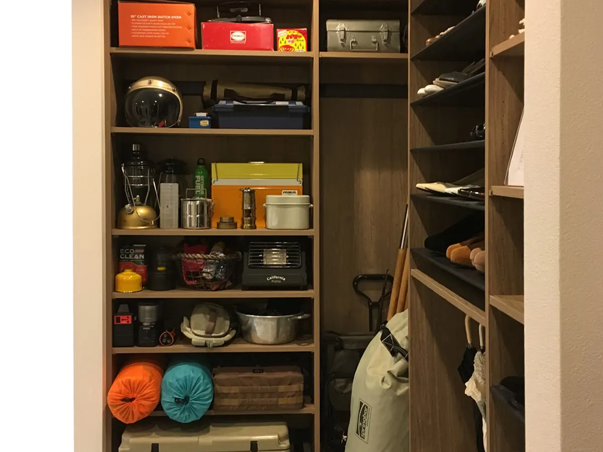 玄関・土間のオープン収納 靴以外にも外グッズをまとめて収納HOUSTO おウチの収納.com。