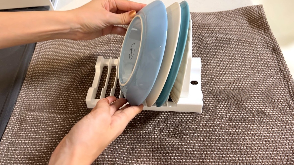 100均セリアのディッシュスタンドが便利。収納アイデアや活用法をブログレポート。