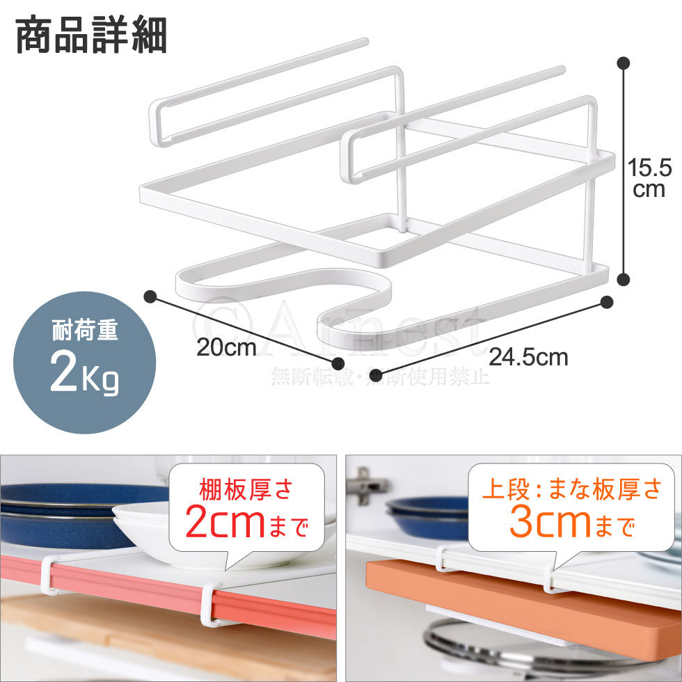 吊戸棚下収納ラック まな板&鍋フタ マットホワイトA-77673アーネスト株式会社アイデア雑貨商品。