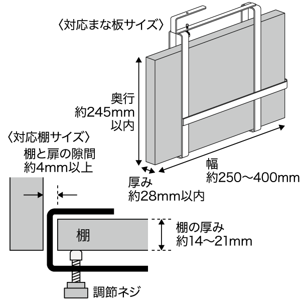 黒 25.8cm奥行戸棚下まな板ホルダー まな板 収納 吊り戸棚 吊り下げラック 戸棚。