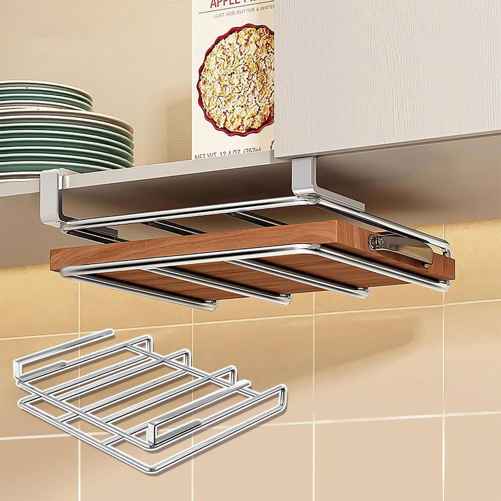 吊り下げ棚 吊り下げラック まな板スタンド 戸棚下まな板ホルダー 吊り下げ収納 ラック 戸棚下収納ラック キッチン収納ラック 吊り棚キッチンペーパーホルダー 布巾ハンガー ステンレス製 浮かせる シ。