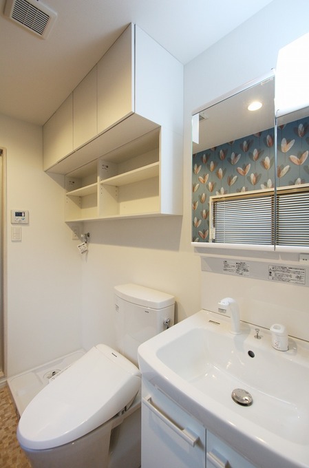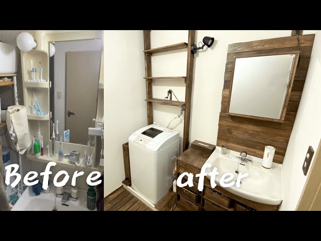 洗面所DIY 賃貸アパートの洗面台をデザイナーズ風に大改造 ドドン!と壁面収納。