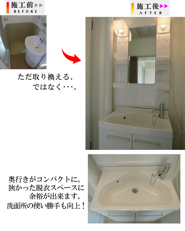 ポイントリフォーム 狭い洗面脱衣所でも大丈夫門真市の賃貸グランエステート。