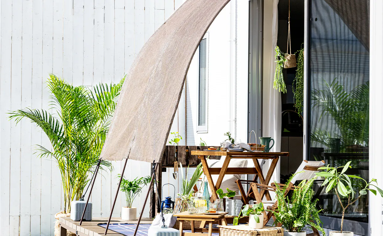 日除け サンシェード・タープの選び方&取り付け方法初心者でもできるお庭やベランダでもできるおすすめ設置方法 カインズ日よけ。