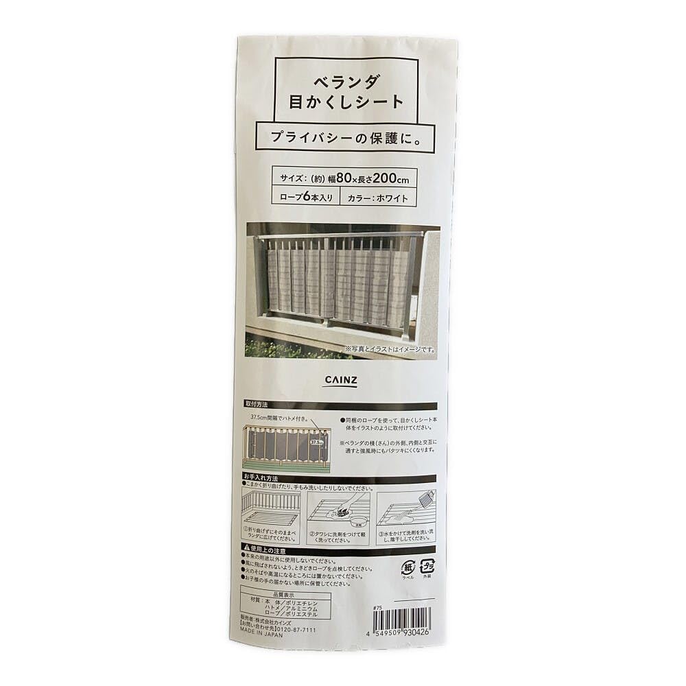 Amazonカインズ CAINZベランダ目かくしシート 幅80cm 長さ200cm ホワイト ロープ6本入 日本製 目隠し シート ベランダバルコニー 網戸用品オーニング・シェード。