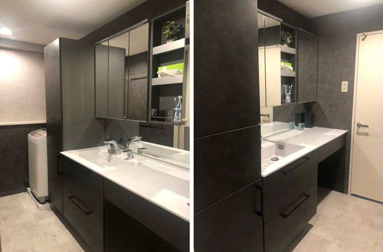 ホテルライクで使い勝手のいい洗面所デザイン造作やリノベで変わる動線と空間中古マンション・戸建てリノベーション&リフォーム。