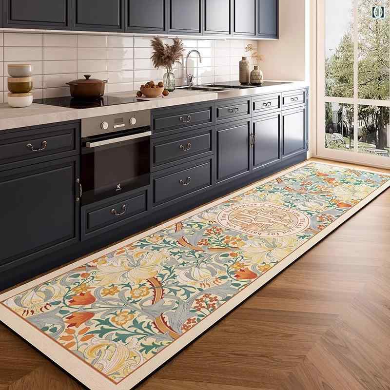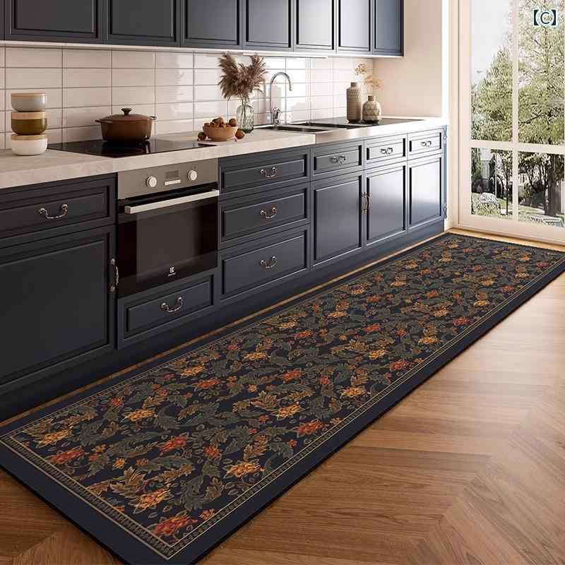 幾何学模様がおしゃれ!アメリカンレトロ風の拭けるキッチンマット 240cmキッチンマット専門通販 キッチンマート。